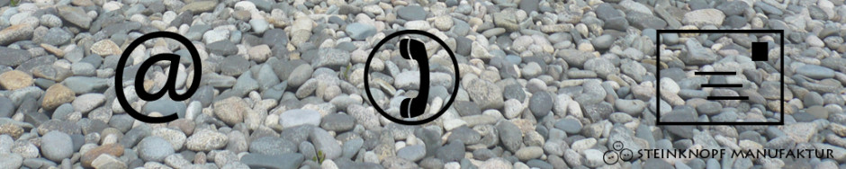 Kontakt STEINKNOPF MANUFAKTURDorothee Barnikol Postanschrift:Dammweg 4 , 6800 Feldkirch , Österreich Telefon:00 43 (0)664 533 67 55 E-Mail: manufaktur@steinknopf.at Gerne können Sie mir eine Nachricht schreiben.